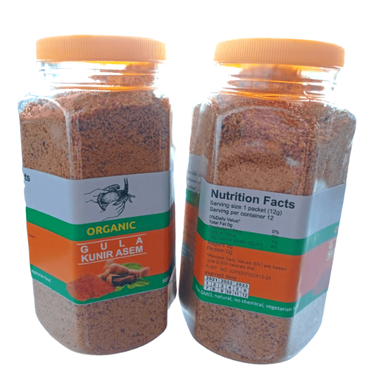 Manfaat fungsional: Produk ini menggabungkan manfaat penambah energi dari gula kelapa dengan khasiat kesehatan kunyit dalam satu kemasan.